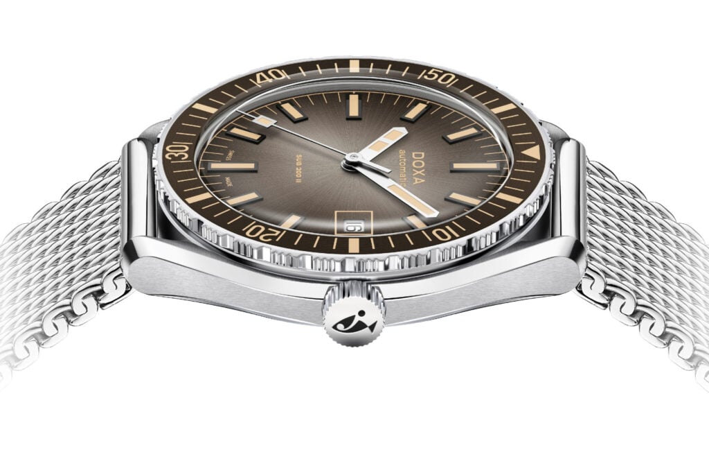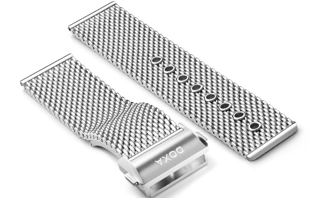 Quanto às braceletes, há duas opções de conotação vintage: borracha cauchu inspirada pela histórica bracelete de mergulho Tropic perfurada e malha metálica milanesa, alternativa retro de execução moderna que constitui novidade no contexto da Doxa. «A nossa ideia de apresentar uma bracelete milanesa foi surpreender; mas quisemos fazer a diferença, apresentando uma milanesa com buracos e fivela deslizante em vez dos fechos habituais das milanesas, que se abrem demasiado facilmente».