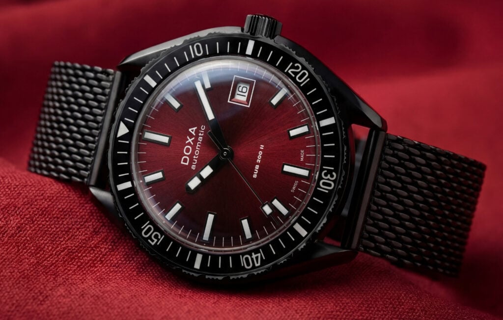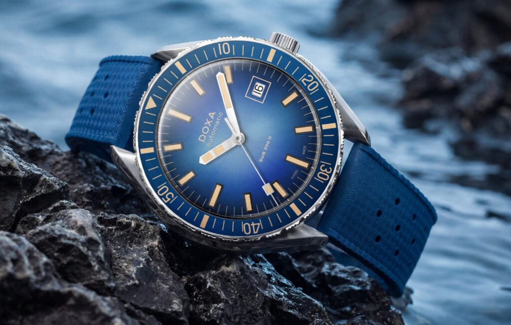 Pela primeira vez, a Doxa — que já havia utilizado ocasionalmente o subterfúgio — introduz uma linha completa com mostradores fumados (degradé) e acabamentos raiados sunburst, criando maior profundidade visual e sofisticação estética. Trata-se de um aspeto relevante porque marca uma transição subtil: o Sub 200 II deixa de ser apenas o diver neo-vintage de preço acessível que é o Sub 200 para se posicionar como um relógio de uso diário mais versátil e estilizado. Um relógio de mergulho casual chic…