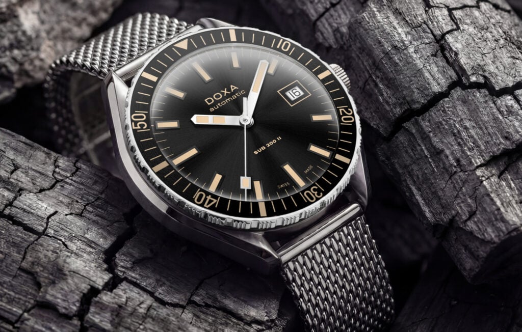 A coleção atual da Doxa organiza-se de forma clara. No preço de entrada estão o Sub 200 (que se mantém, pelo menos por enquanto) a 1.100 euros e o Sub 200 II a 1.590 euros; a interpretação moderna da linguagem Doxa está a cargo do Sub 200T e do Sub 600T; o núcleo histórico (puro ADN da marca) é representado pelo Sub 300 e pelo Sub 300T; os modelos profissionais de mergulho extremo são personificados pelo Sub 750T (lançado o ano passado no Geneva Watch Days) e pelo Sub 1500T; o exercício de estilo experimental é dado pelo Sub 300 Carbon ultraleve; e depois há as edições limitadas/colaborações, como os modelos Clive Cussler ou Seddiqi para os EAU.