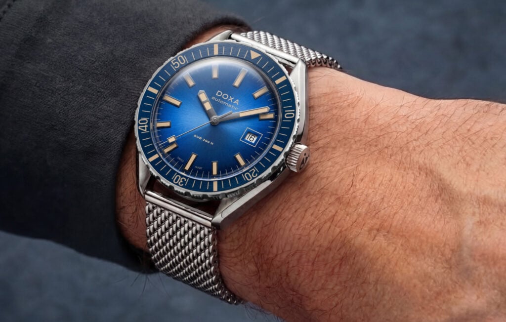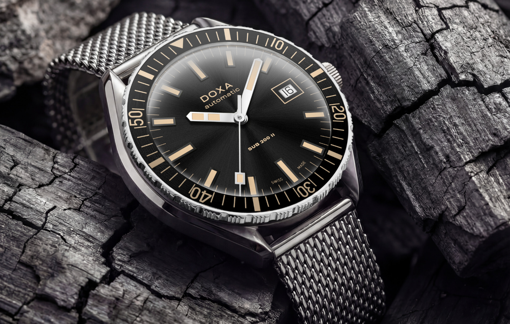 Com o alargamento até aos 44mm, o novo modelo da Doxa representa uma inesperada evolução num mercado que está a encolher os relógios e oferece uma dimensão mais estilosa ao catálogo da marca de Bienne especializada em tool watches.