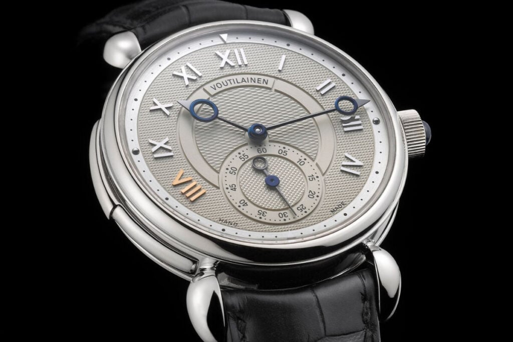 Diversas outras maisons mantêm a tradição viva ao mais alto nível, embora somente em determinadas linhas. A Patek Philippe emprega-o seletivamente em altas complicações e peças raras feitas à mão; a Vacheron Constantin integra o guilhoché nas suas criações Métiers d’Art; a F.P. Journe utiliza mostradores dourados com acabamento guilloché para reforçar uma linguagem estética coerente; a Breguet continua a ser sinónimo de guilhoché clássico, combinando frequentemente múltiplos motivos num único mostrador. Mas os relógios Voutilainen estão numa dimensão à parte, como se pode constatar pelo preço mínimo de 100 mil euros e uma waiting list de 11 anos… que nos foi confirmada pelo próprio mestre finlandês, embora ele esteja a organizar-se de modo a reduzir esse longo período de espera que já o levou a parar de aceitar encomendas.