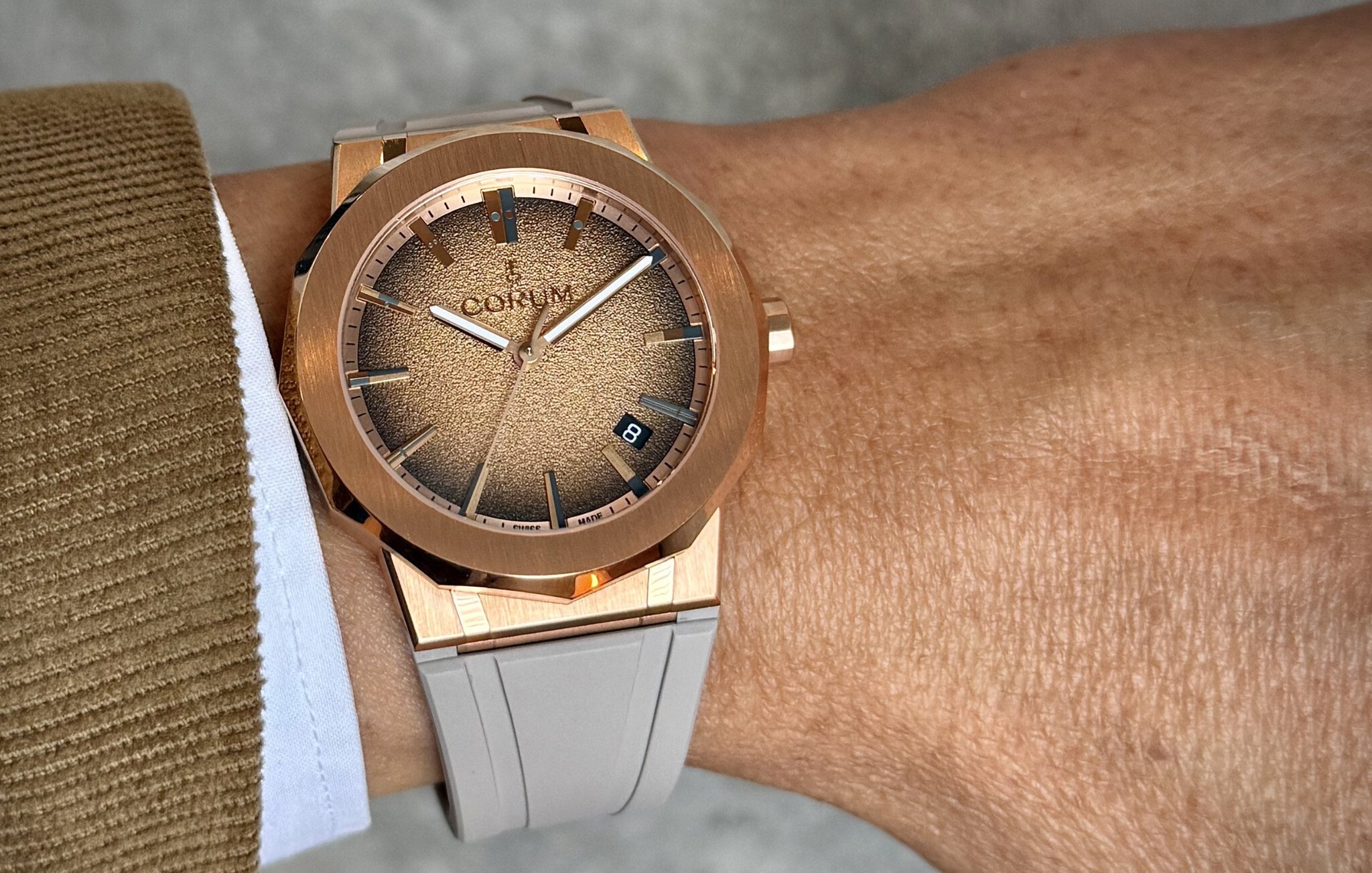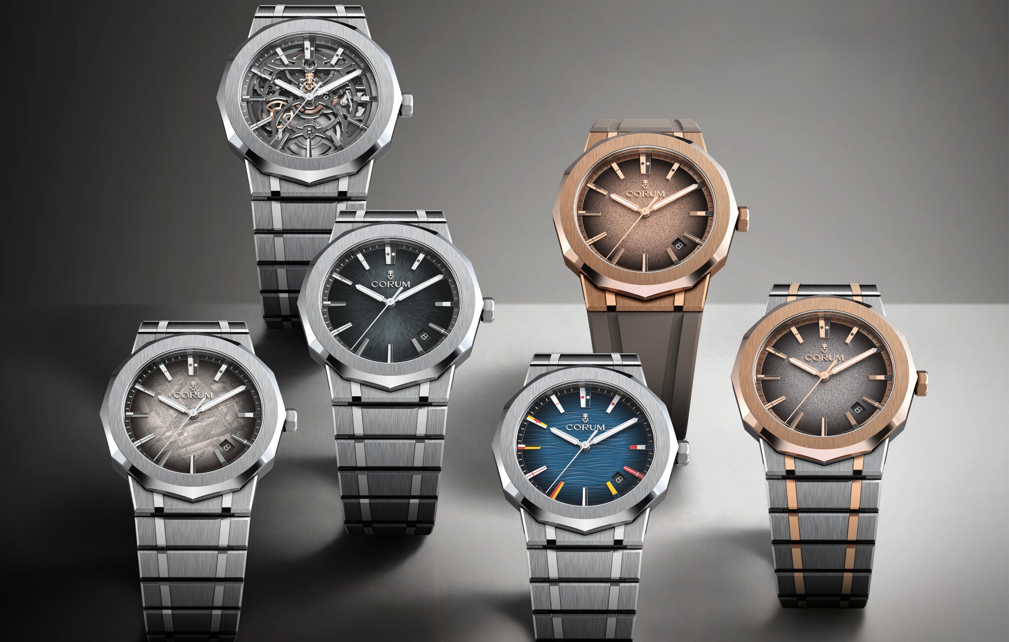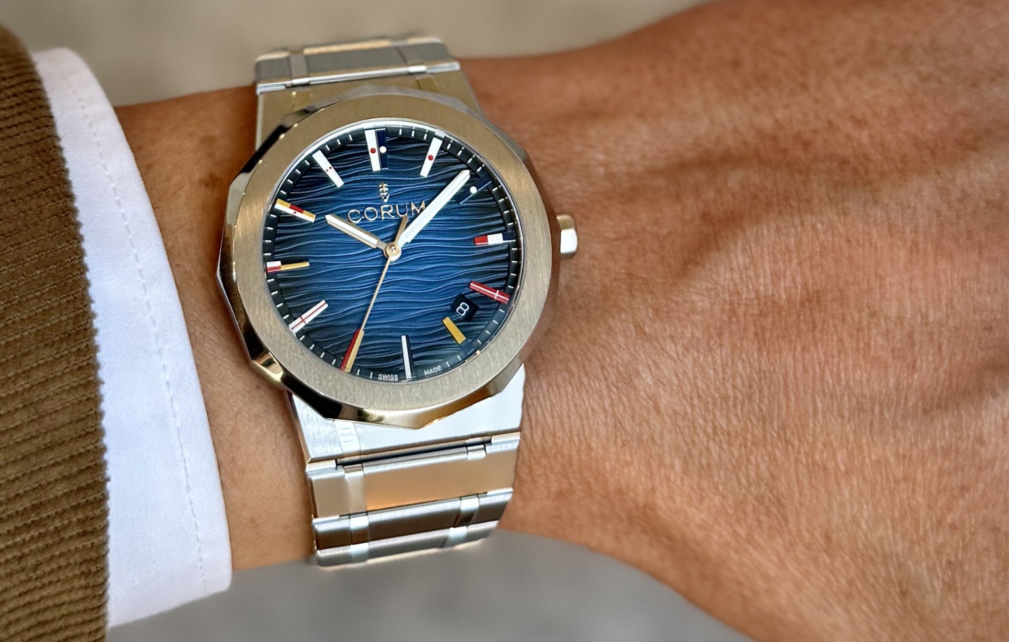 Mas não foi assente em históricos modelos tão fora da caixa como o Tabogan ou o Bubble que a Corum alicerçou o seu regresso. Foi no emblemático Admiral, mesmo que o relançamento também inclua a superlativa especialidade mecânica Golden Bridge e o peculiar Coin Watch numa primeira fase. O Admiral é mesmo o protagonista e o trunfo com que a marca de La Chaux-de-Fonds se apresentará dentro de poucos dias no Watches and Wonders: no total, onze referências assentes em quatro fundamentos — nova caixa em dois tamanhos, novos mostradores com múltiplas alternativas, nova bracelete integrada e novo calibre desenvolvido exclusivamente com a Concepto.