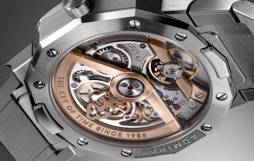 O novo movimento automático exclusivamente desenvolvido pela Concepto para a Corum é a verdadeira pedra angular do Admiral. A Corum abandonou a dependência de bases mecânicas genéricas e introduziu um novo calibre automático desenvolvido com um parceiro especializado na concepção de movimentos também sediado em La Chaux-de-Fonds.