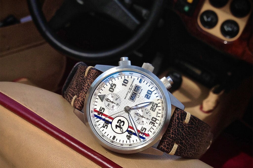 No interior, bate o Calibre ETA 7750 — que é visível através do fundo de safira, destacando-se a massa oscilante inspirada no mundo do desporto motorizado. A mecânica transforma-se em emoção, o tempo ganha corpo e alma: «A Maurice de Mauriac cria relógios para pessoas que não querem possuir o tempo, mas sim viajar com ele. O Dakar Classic é isso mesmo: viajar com o tempo. E, no final, não tem tanta importância chegar mais depressa, mas sim mais rico pela experiência», dizem Massimo e Leonard Dreifuss, filhos do fundador e atuais responsáveis pela marca de Zurique.