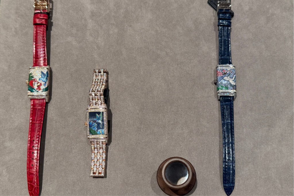 A linha Reverso voltou a ser o principal veículo de expressão artística da marca, com destaque para a série Reverso Tribute Enamel Hokusai ‘Waterfalls’ — onde a caixa clássica do Reverso Tribute (45,6 x 27,4mm) em ouro branco serve de suporte a um trabalho decorativo excecional no verso: miniaturas esmaltadas inspiradas nas cascatas nipónicas de Hokusai, executadas com técnicas tradicionais de esmalte grand feu.