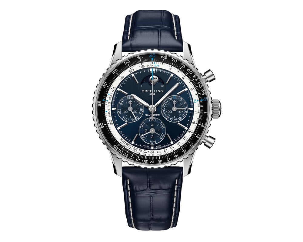 A Breitling apresenta este ano uma dupla evocativa das mais elevadas altitudes. O Navitimer B19 compreende dois relógios com cronógrafo e calendário perpétuo, equipados com o Calibre B19, apresentado pela primeira vez em 2024 para assinalar o 140.º aniversário da marca. Um dos modelos tem caixa em aço e luneta em platina, bem como um mostrador antracite. O outro, limitado a 75 exemplares, tem caixa totalmente em platina e mostrador lacado a azul profundo. É este último que hoje destacamos.