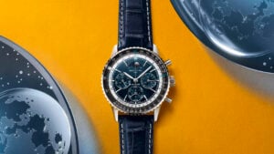 Pele azul ou preta de aligátor ou cauchu preto ou azul. Fivela em ouro rosa ou aço.